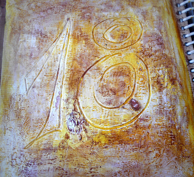 mixed media, structural paste, acrylic paints, fabric flowers